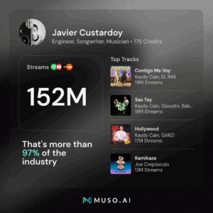 Miembro de la Academia de los Latin Grammy y disco de oro en su trayectoria, Javier también ha contribuido al desarrollo de herramientas de audio para marcas como Tierra Audio, Ollo Audio y Softube, aportando su experiencia al diseño de tecnología para la industria musical. Con más de 140 millones de streams acumulados, su trabajo refleja un compromiso constante con la calidad, el detalle y el deseo de crear música que resista al paso del tiempo.
